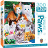 This MasterPieces 18" x 24" Playful Paws 300PC EZ Grip Puzzle is the perfect blend of exciting and adorable kittens. Puuurfectly Adorable Playful Paws Puzzle features curious kittens messing around in the garden. Through their remarkable eyes, Jenny Newland's precious puppies and kittens are brought to life with colorful detail and sweet expressions. Jenny is able to capture the personalities of her adorable subjects so well, because she and her family are surrounded at home by four dogs, fifteen cats, and various farm animals. Each puzzle has extra-large pieces for a fun and quick night of puzzling with the family or group of friends. The EZ-Grip die-cut used to make this puzzle offers larger puzzle pieces for easier visual and grip that snap together perfectly, without compromising image quality. To reduce their impact on our environment, the chipboard used in these puzzles is made of 100% recycled material.